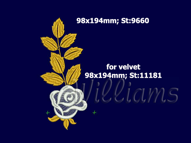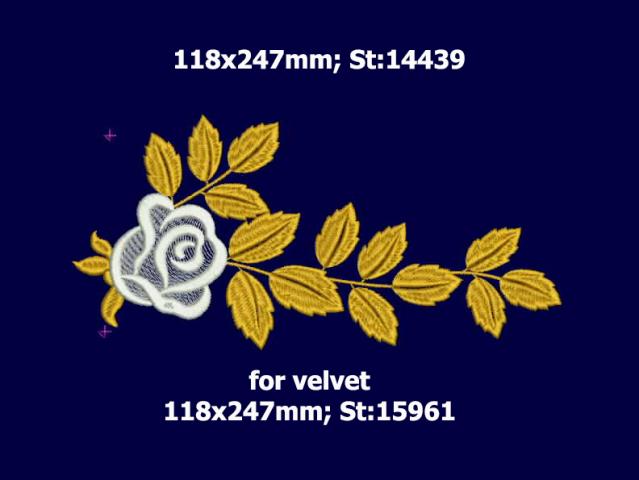 Design in 2 versions: for embroidery on velvet and for smooth fabric.