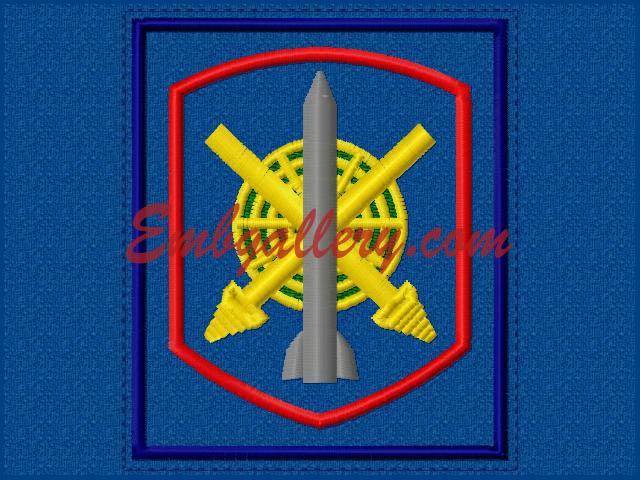 Дизайн машинной вышивки "Нарукавный знак"_K659 85x100mm (+ строчка для вырезания); St:9607; Clrs:6/6; В архиве форматы: PES, JEF, HUS, DST, VIP, VP3, EXP
