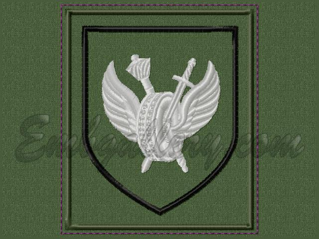 Дизайн машинной вышивки "Нарукавный знак"_H1790 85x100mm (+ строчка для вырезания); St:9637; Clrs:4/4; В архиве форматы: PES, JEF, HUS, DST, VIP, VP3, EXP