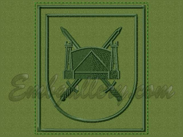Дизайн машинной вышивки "Нарукавный знак"_H1868 85x100mm (+ строчка для вырезания); St:8683; Clrs:2/2; В архиве форматы: PES, JEF, HUS, DST, VIP, VP3, EXP