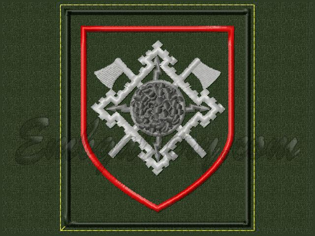 Дизайн машинной вышивки "Нарукавный знак"_H1867 85x100mm (+ строчка для вырезания); St:9461; Clrs:6/7; В архиве форматы: PES, JEF, HUS, DST, VIP, VP3, EXP