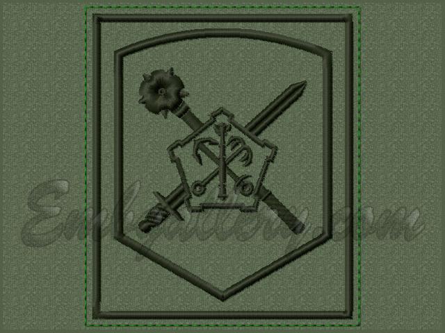 Дизайн машинной вышивки "Нарукавный знак"_H1955 85x100mm (+ строчка для вырезания); St:7329; Clrs:2/3; В архиве форматы: PES, JEF, HUS, DST, VIP, VP3, EXP