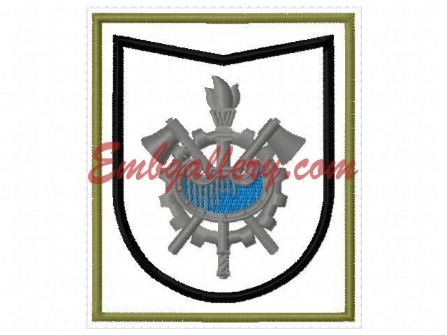 Дизайн машинной вышивки "Нарукавный знак"_K693 85x100mm (+ строчка для вырезания); St:9244; Clrs:5/5; В архиве форматы: PES, JEF, HUS, DST, VIP, VP3, EXP