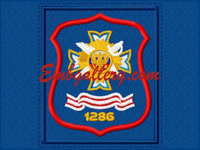 Дизайн машинной вышивки "Нарукавный знак"_K736 85x100mm (+ строчка для вырезания); St:12891; Clrs:6/10; В архиве форматы: PES, JEF, HUS, DST, VIP, VP3, EXP