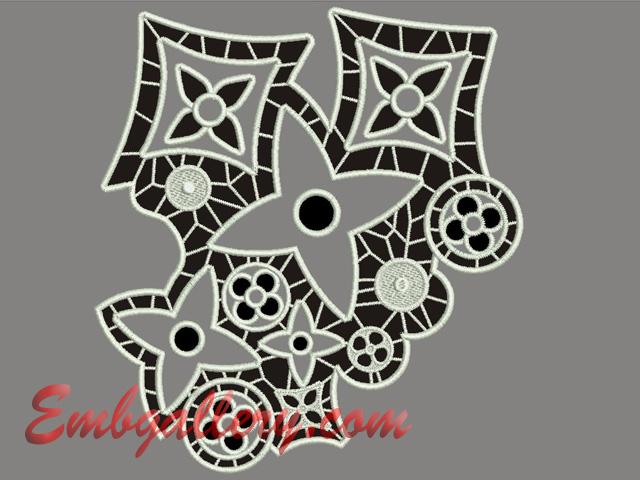 Дизайн машинной вышивки "Круги ришелье"_большой 199x216mm; St: 40600; Clrs: 1/3; В архиве форматы: PES, JEF, HUS, DST, VIP, VP3, EXP