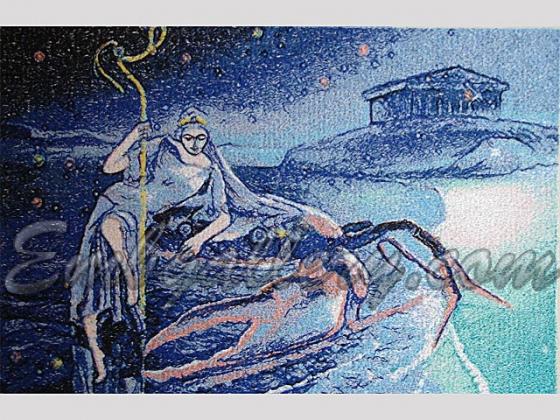 Для вышивки картины использован дизайн машинной вышивки в технике фотостежка "Знаки зодиака-Рак" автора Tina