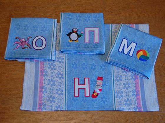 Для вышивки на этих кухонных полотенцах использованы дизайны из коллекции "Детская азбука".